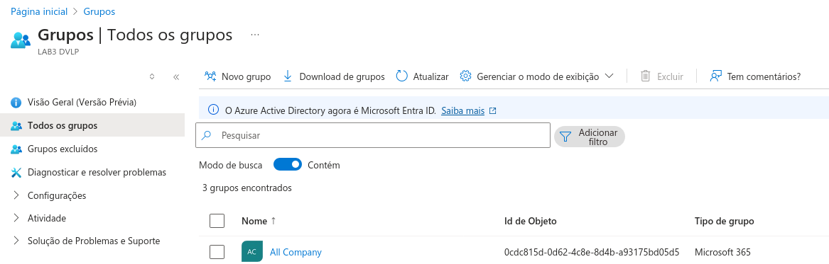 Criação Grupo Azure AD