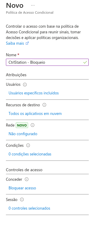 Configuração Entra ID para Bloqueio Office 365